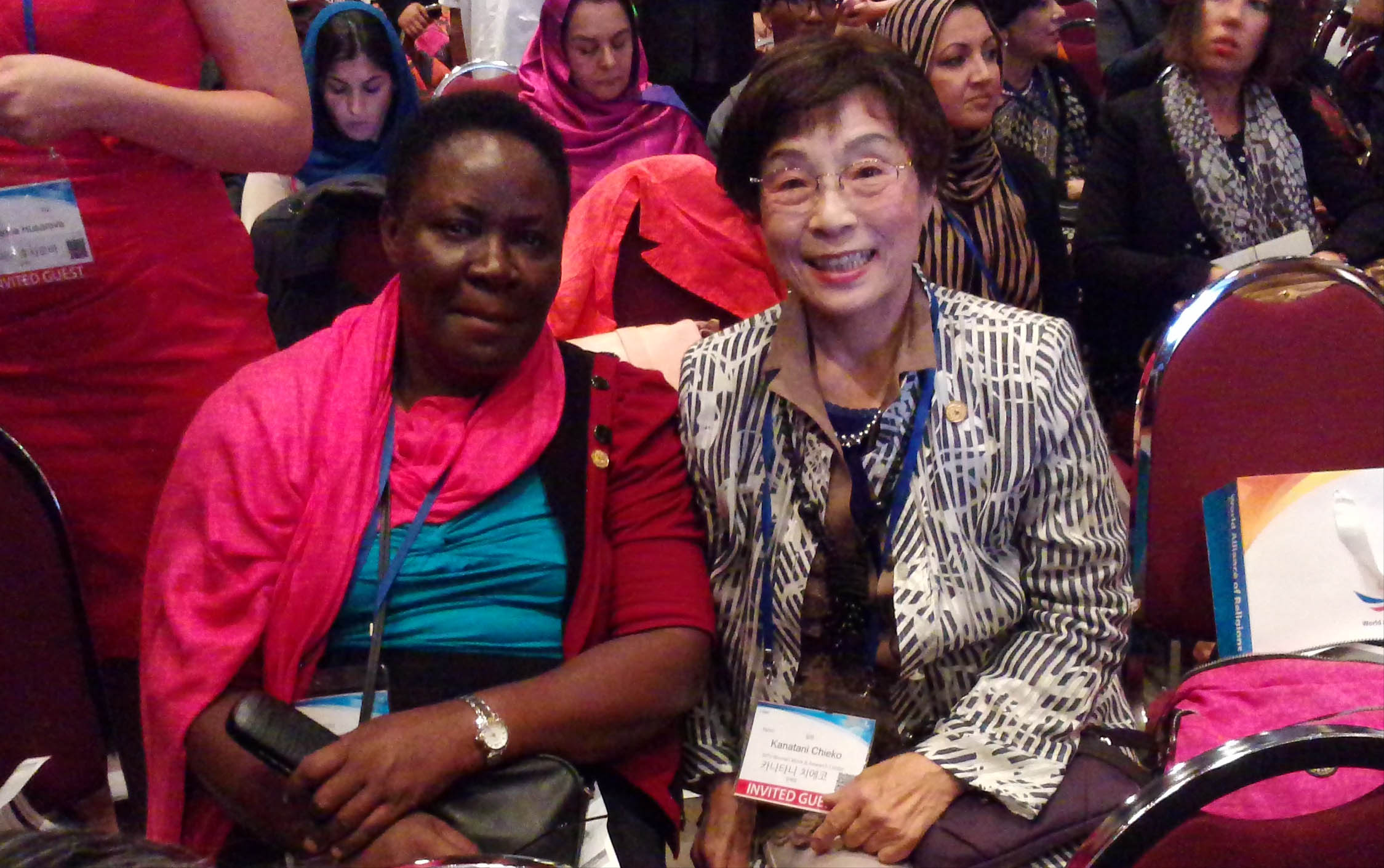 ただこれだけ多くの国や地域から平和を目指して多くの女性たちが集まったとなると、私もにわか ミニレポーターとして、となり同士になった女性たちに少しずつインタビュー をすることにしたのです。