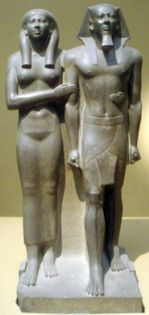 『メンカウラー王と王妃の粘板岩二体像』