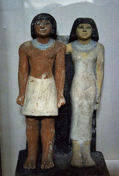 『メルスアンク夫妻立像』 古王国/第5王/前2350年頃/ギザ台地出土/石灰岩/彩色/高さ49.5cm