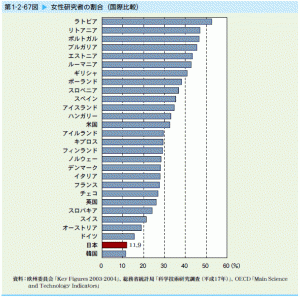 日本では義務教育はともかく、大学進学は個人の努力、家庭の問題とされ、公的支出は抑えられており、次世代の育成は自己責任にされている。さらに女性に言及すれば、女性の4年制大学進学率は男性より8ポイント近く低く、特に大学院では差が開く。そのことは女性の指導的立場の人材が少なくなるということである。女性研究者の比率もOECD調査で最低となっている。