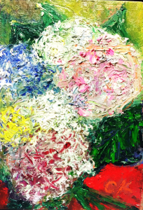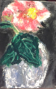 翌朝お掃除に訪れた女性にまず見つかり、「絵を描いている患者さんなんて見たことないわ」と。日々、看護師さんも「私はこっちが好きだわ」などといってくれました。それからF4を4枚増やして、合計7枚花ばかり描きました。2週間では全部は完成しませんでしたが、完成した3枚を見てもらうことにします。