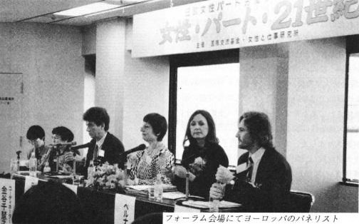 写真は筆者(左から2人目)が中心となって開催した「国際パートシンポジウム」で、EU第5総局〔パート労働を含む:当時〕ポール・ウィンディ氏〔右端〕から、「日本にはフルタイムパートっていうのがあるそうですが、なにかペナルティのようなものが課せられるのですか」という質問を受けて、司会をしていた私は戸惑ってしまった。1998年のことである。