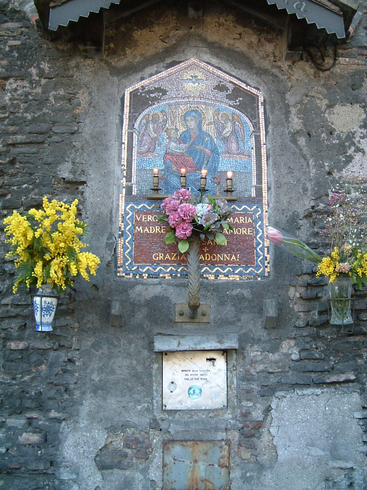 また、3月8日のイタリアの「ミモザの日」は有名で、「FESTA DELLA DONNA(フェスタ・デラ・ドンナ=女性の日)」とされ、女性に感謝を込めて、母親や妻、友人、会社の同僚などに愛や幸福の象徴でもあるミモザが贈られています。黄色のミモザは春の訪れを象徴する花です。ちょうど3月8日にローマに滞在していたとき、花屋さんだけでなく、喫茶店もブティックも雑貨屋さんも窓際をミモザで飾り立てていました。街角のマリアの像にも、教会を訪れた観光客にもミモザが贈られていました。