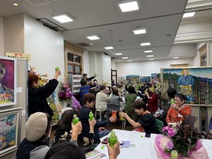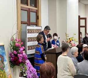 美しいお花に囲まれて、めずらしい差し入れのおやつに舌鼓を打ち、いっぱいお話をして、涙・涙でこの5日間の展覧会を終えました。極上の時間をいただいたこと本当にありがとうございました。こんなうれしい奇跡が起こりました。心を寄せてくださったみなさまに深く感謝しています。