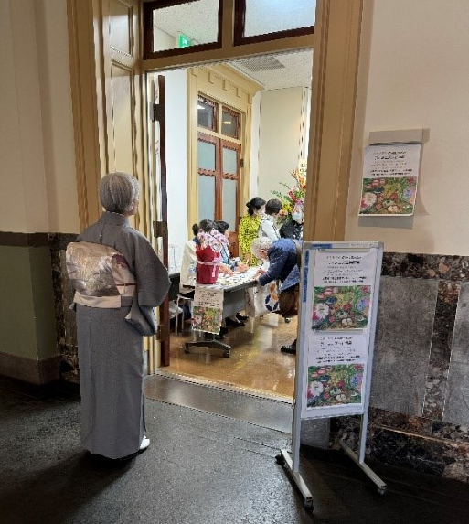前日からの雨も上がって、秋晴れの中之島中央公会堂です。午前9時から準備に入りました。専門家が2人、助けてくれる人17人で、70展の絵画を配置、設置していきます。まずパネルを地下の倉庫から運び出します。ミリ単位で設計図を作成した入念な準備が効を奏して、パネルにぴっちり並びました。圧巻です。お祝いのお花も次々に運び込まれて展覧会モードいっぱいです。
