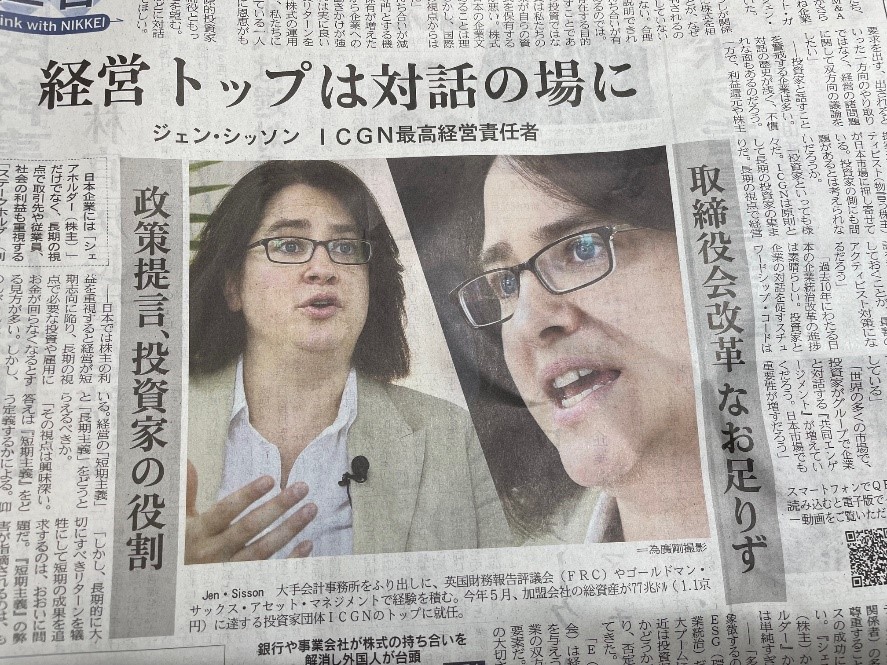 2024年9月29日の日経新聞で世界の投資家を束ね企業に統治改革を求める組織、国際コーポレート・ガバナンス・ネットワーク(ICGN)のジェン・シッソン最高経営責任者(CEO)がも日本政府に対して、取締役会の改革をさらに進め、投資カとの連携をさらに密にするよう求める記事が出ています。やっぱり現在も日本企業の内向き志向は続いているのだなーと感じました。