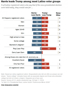 ヒスパニック系有権者では、民主党支持お減少が顕著です。共和党支持者に非大卒が多く、ヒスパニック系有権者には非大卒の割合が高く、それが共和党支持の傾向が強まった要因とみられています。