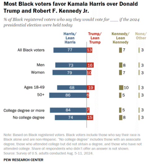 黒人やヒスパニック系の有権者は長く民主党を支持でした。民主党は「公民権運動」やマイノリティの権利を保護してきたからです。ところが今回の選挙では、2020年のバイデン氏まで民主党が90%以上を確保してきたにもかかわらず、ハリス氏は80%前後に落ち込むとされています。