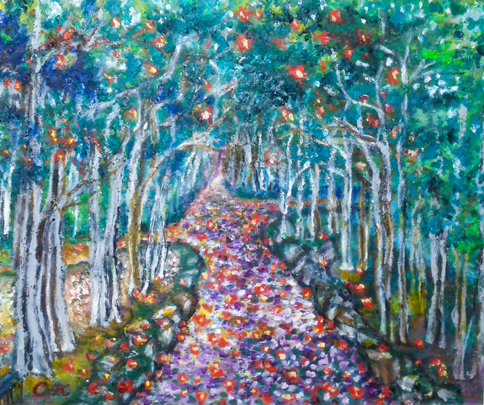 ひとつは「大島椿ー残花繚乱」 としました。これと同じドラマのタイトルがあったような気がしますが、よく覚えていません。