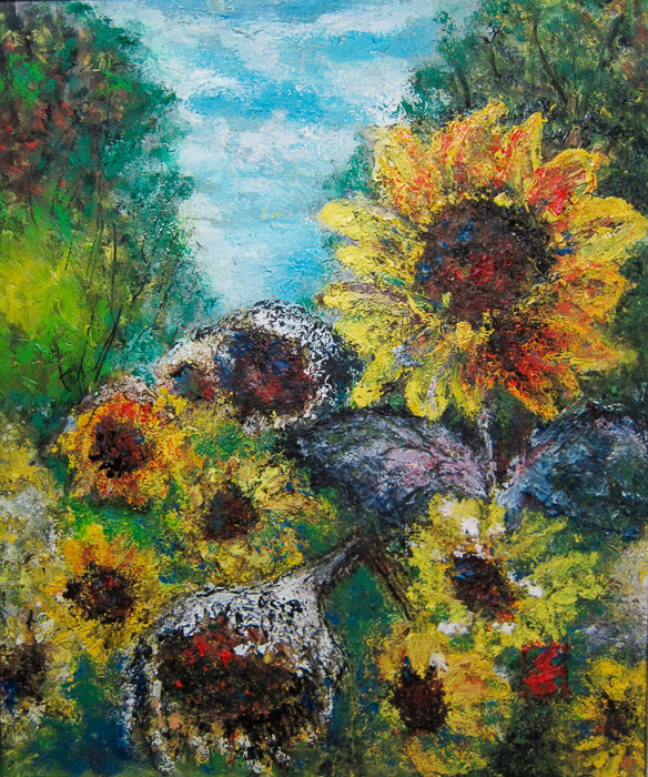 2 「森のひまわり畑に秋がきた」 F8号