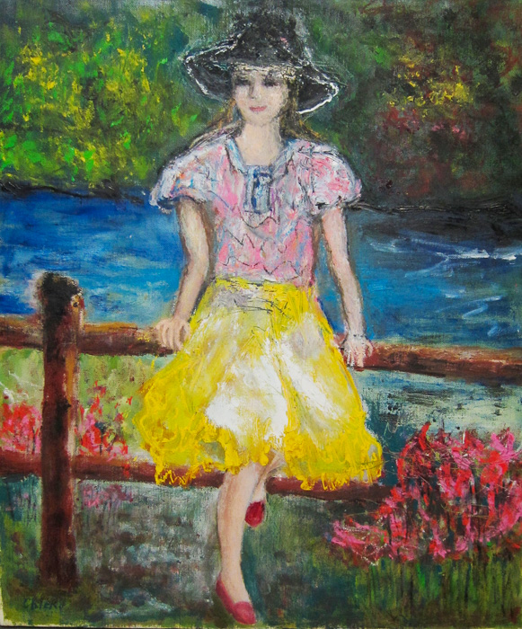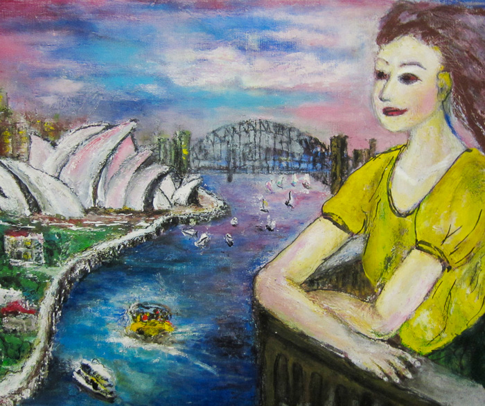 オーストラリアのシドニー橋とオペラハウスとボートというのは絵葉書の定番です。そこに若い女性が哀愁をおびた面持ちで手すりに佇んでいます。モデル嬢はいつのまにか、この風景にぴったりのところに住んでいる娘に代わってしまっていました。