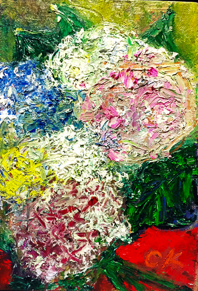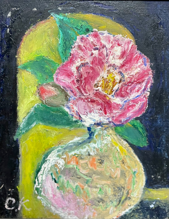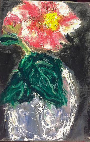 翌朝お掃除に訪れた女性にまず見つかり、「絵を描いている患者さんなんて見たことないわ」と。日々、看護師さんも「私はこっちが好きだわ」などといってくれました。それからF4を4枚増やして、合計7枚花ばかり描きました。2週間では全部は完成しませんでしたが、完成した3枚を見てもらうことにします。