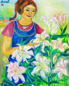 『ゆりと母親』(2015年6月制作 F15号 金谷千慧子)