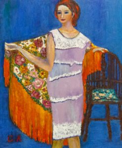 楽しかったのですが、いつもモデルは女性で、ヌードモデルも頻繁にありました。「見られる女性と見る男性」「描かれる女性と描く男性」という構図がとてもしんどくなっていました。それからヌード絵画が高級な絵画「Fine Art」なんていうのは、19世紀のことだと思っていましたら、今だにそれが当たり前だったのです。女性の受講生は「ヌードも慣れの問題よ」「慣れたらなんともないよ」と慰めてくれますが、私は、この慣れて感覚が鈍感になるということが大きな問題だと思っています。私の場合は描き終わったらすぐに着衣の絵に変えてしまいました。(それがお手元の写真集の6頁4-1ショールを持つ女性で、これは変えた絵の一つです)。