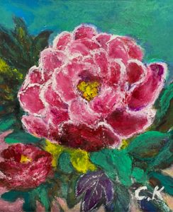 牡丹の季節です。色紙に油絵の具とアクリル絵の具で描きました。